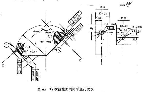 A3 橫波平底孔試塊見圖A3、圖A4、圖A5。