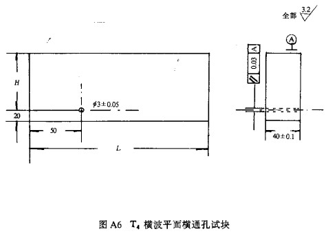 5.6.2.4 對(duì)比試塊上的平底孔(或橫通孔)作為人工缺陷,人工缺陷的尺寸必須符合驗(yàn)收質(zhì)量等級(jí)要求。
