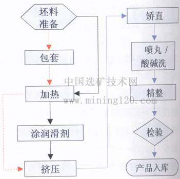 圖2 鈦材熱擠壓工藝流程