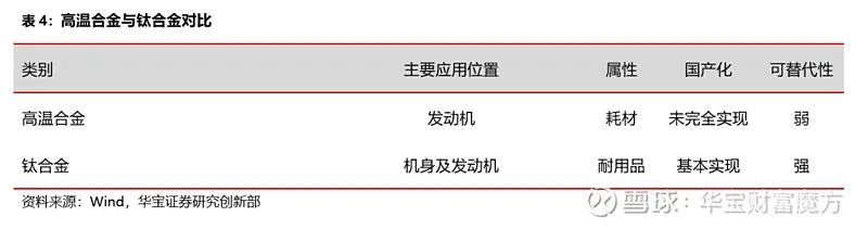 3、國產(chǎn)化程度不同:目前國內(nèi)航空鈦合金基本實(shí)現(xiàn)國產(chǎn)化,而高溫合金設(shè)備工藝仍存在進(jìn)一步改進(jìn)空間,尚未完全實(shí)現(xiàn)國產(chǎn)化,為進(jìn)口替代留下充足空間,尤其是變形高溫合金國產(chǎn)化率提升空間相對(duì)顯著;